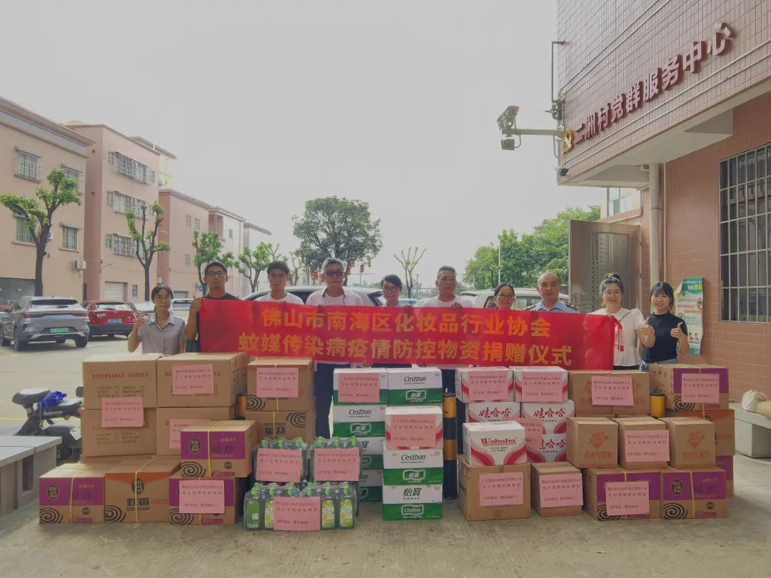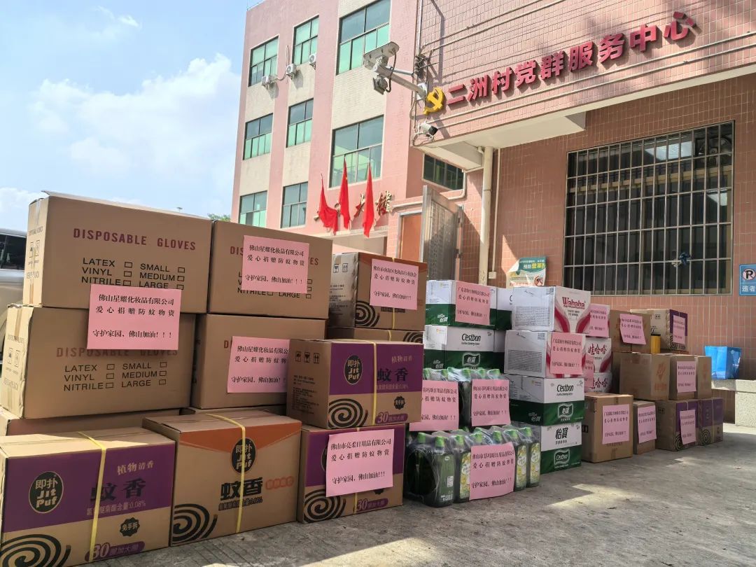 该批物质是由协会以及会员企业捐赠,其中有佛山市亮柔日用品有限公司捐赠的蚊香、杀虫气雾剂,佛山市菲玛斯日用品有限公司捐赠的洗洁精、广东微肽生物科技有限公司捐赠的防晒霜、佛山星耀化妆品有限公司捐赠的手套以及广东诺颜生物科技有限公司捐赠的矿泉水。